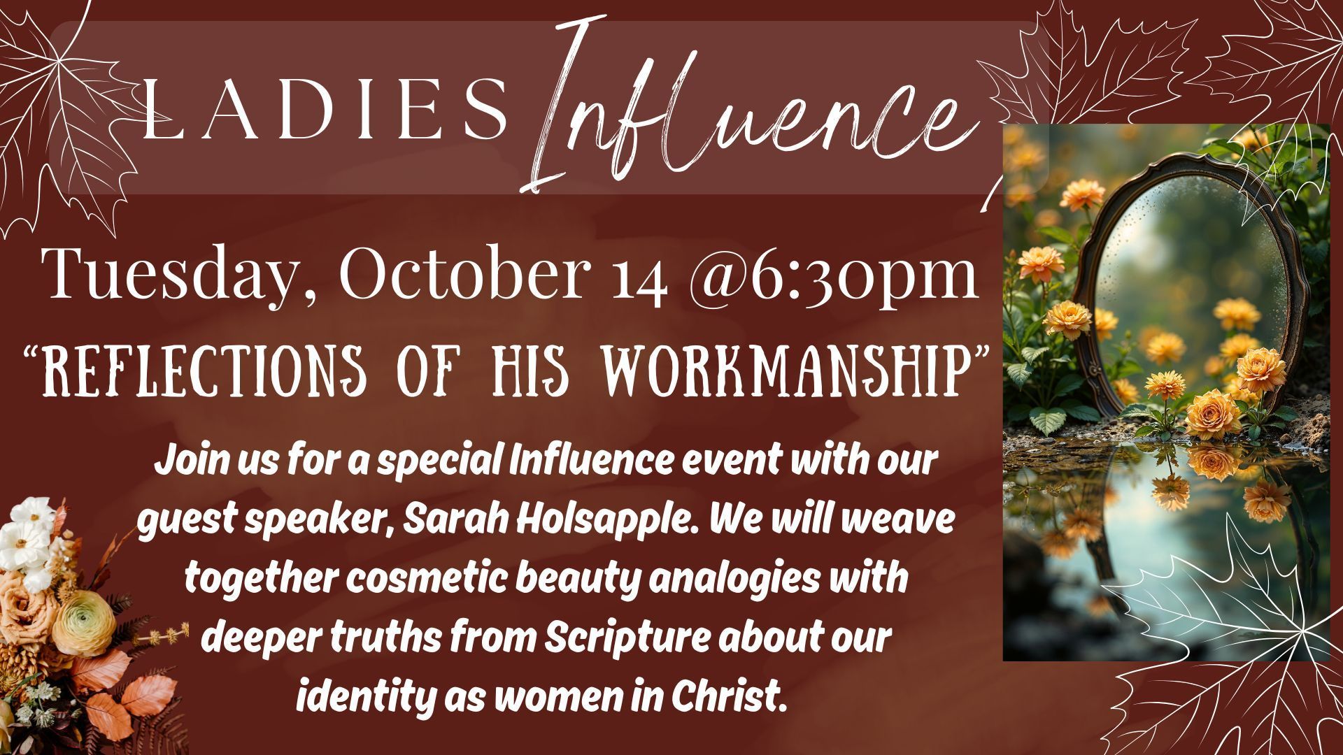 "INFLUENCE" a Titus 2 Ministry: Jesus tells us in John 16:33 (NIV) that in this world you will have trouble, but to take heart, because He has overcome this world. Mark your calendar with the upcoming event!!