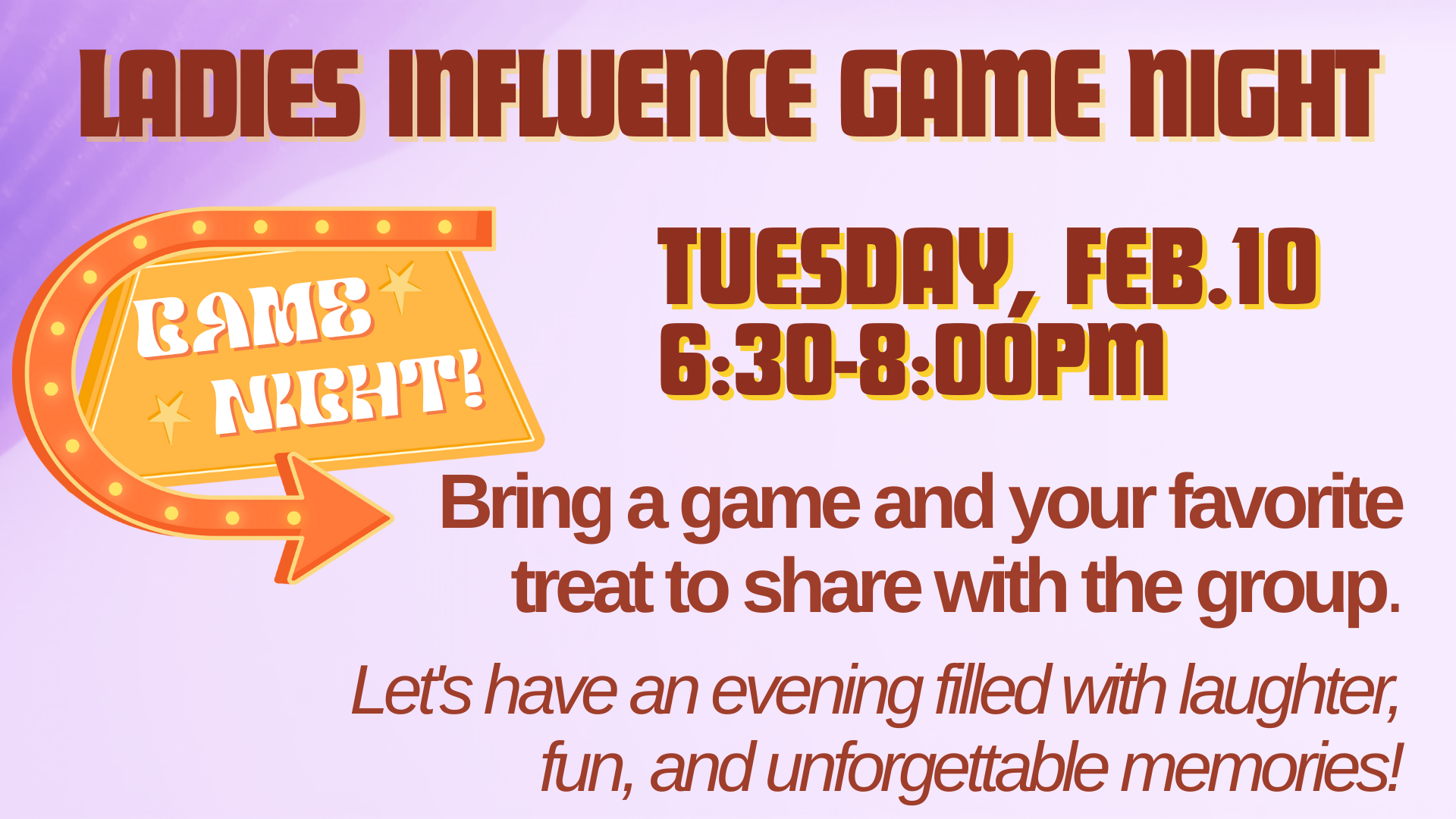"INFLUENCE" a Titus 2 Ministry: Jesus tells us in John 16:33 (NIV) that in this world you will have trouble, but to take heart, because He has overcome this world. Stay tuned for upcoming event dates!!